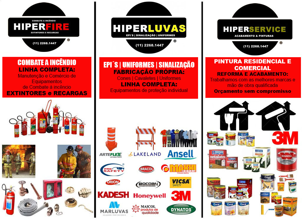 Produtos e equipamentos que atendem as legislações vigentes de segurança, aplicada a diversos segmentos, tais como: construção civil, indústria alimentícia, entre outros.